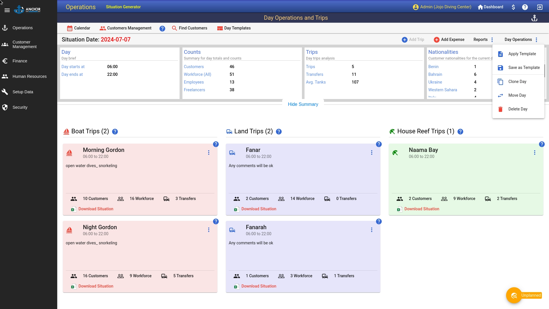 Anchor™ DCMS Lite for diving centers includes a powerful daily trip management feature that makes it easy to plan and execute diving trips with minimal effort. With the ability to copy customers between days, save plan templates for reuse, and clone plans between days, you can streamline your planning process and save valuable time.
